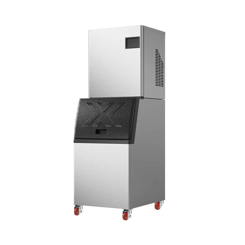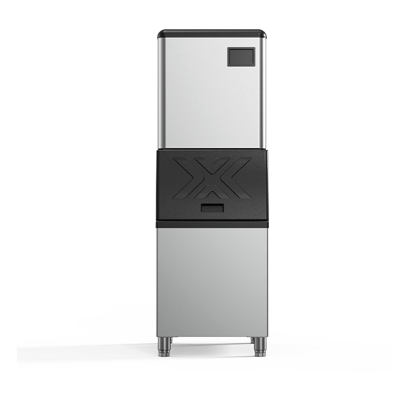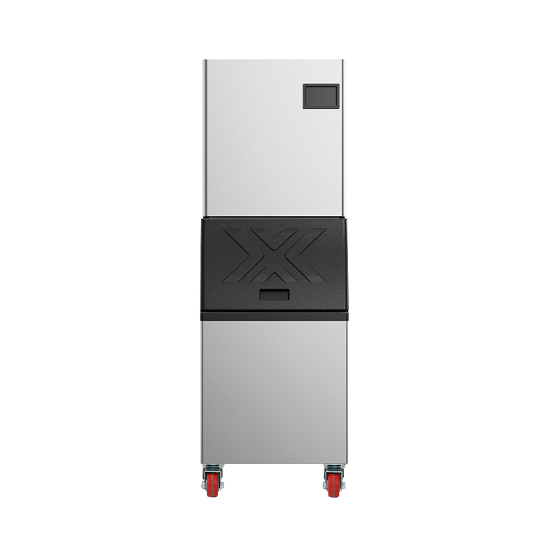 The SMK-182 FRO Stainless Steel Cube Ice Maker is a split-system square ice maker specifically engineered to meet high-demand ice requirements. Its core advantage lies in the split design—separating the "ice-making unit" from the "ice storage bin." The ice-making unit is discreetly housed in the back kitchen or equipment room, while the storage bin is positioned at the service counter or entrance area. This configuration effectively resolves the issues associated with traditional all-in-one units—specifically, the excessive space consumption and the risk of ice shortages during peak hours caused by housing both the ice-making mechanism and storage within a single cabinet. Equipped with a high-efficiency compressor and an air-cooled heat dissipation system, the unit boasts a daily ice production capacity of up to 200 kg. It features a large-capacity 120 kg storage bin, ensuring a continuous and ample supply of ice during peak periods—such as large gatherings, banquets, or busy buffet hours—thereby significantly enhancing operational efficiency and the customer experience.