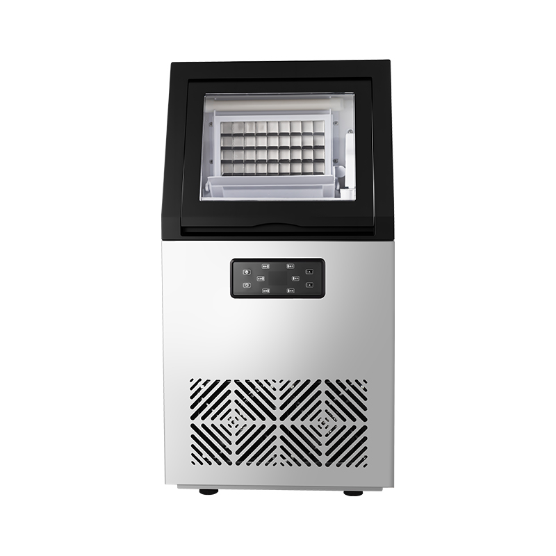 SMK-50F Air-Cooled Indoor Ice Maker is a fully automated device engineered specifically for efficient and pristine ice production. Integrating the ice-making system, storage bin, and condensing unit into a single chassis, it embodies an "all-in-one" design philosophy. This eliminates the common drawback of traditional split-system ice makers, which often require the inconvenient allocation of additional space within a separate freezer cabinet. Thanks to its compact footprint and exceptional performance, the SMK-50F Air-Cooled Indoor Ice Maker has become the preferred choice for the food service industry—particularly for bubble tea shops and cafes—as well as for any commercial establishment requiring high-quality ice cubes.